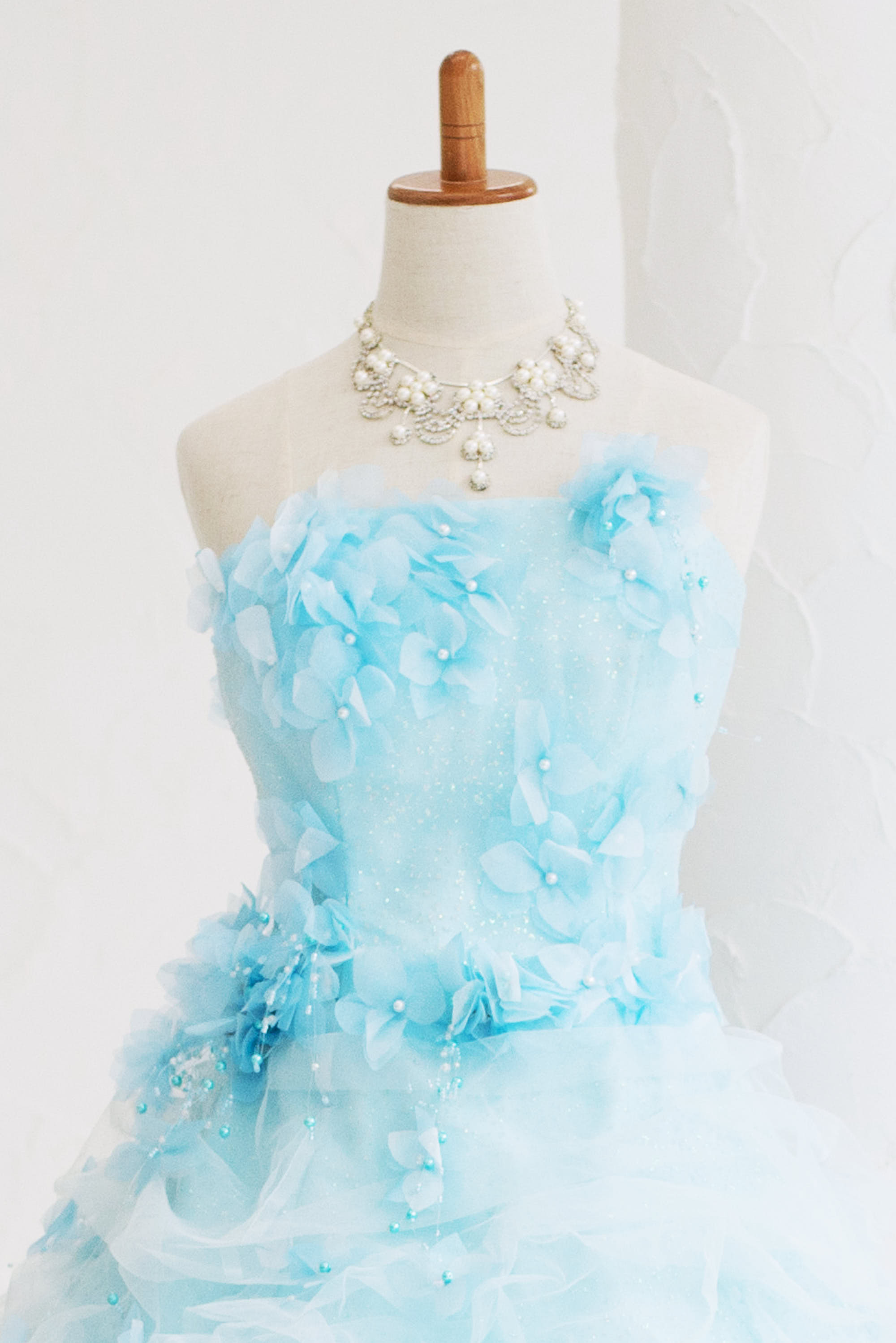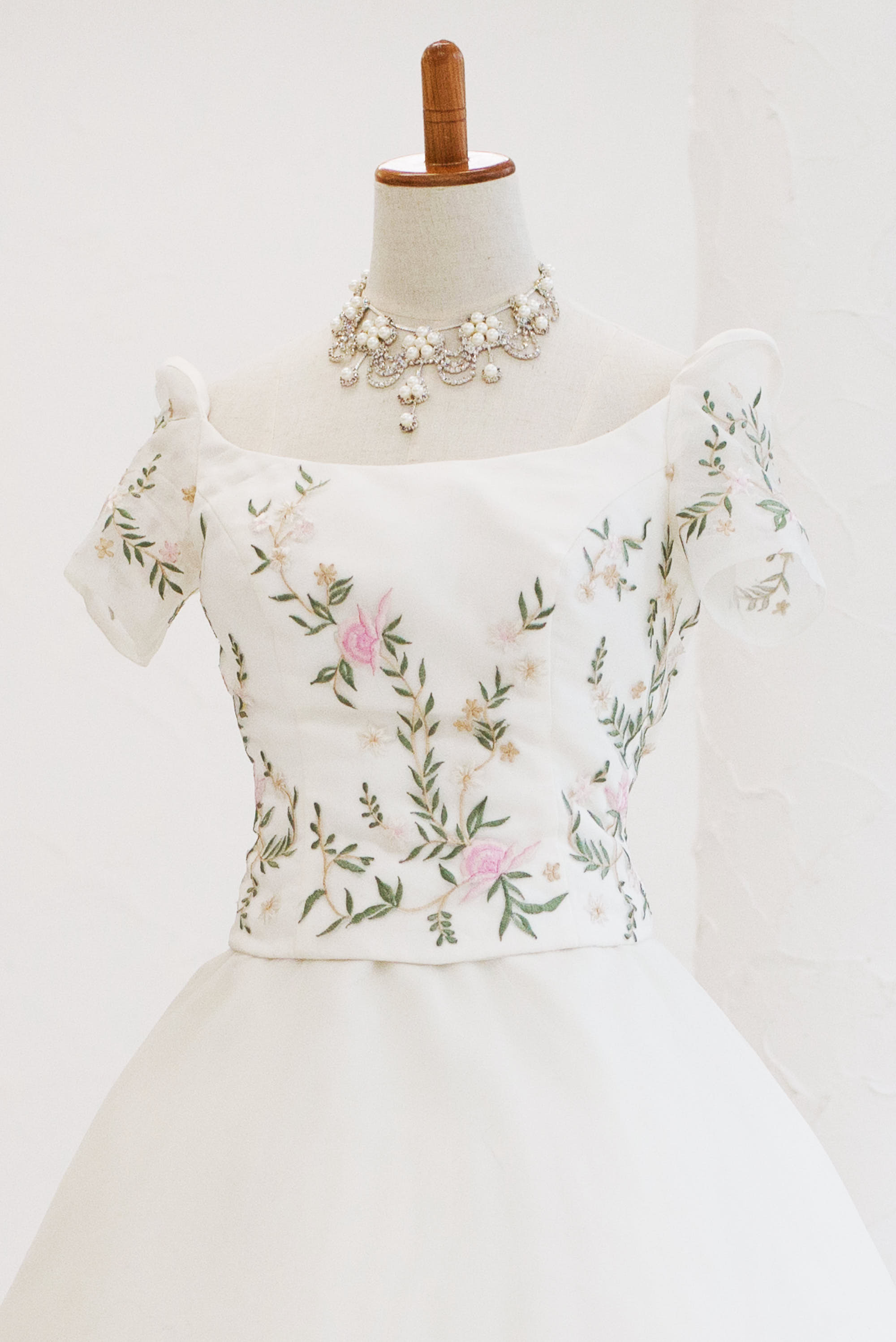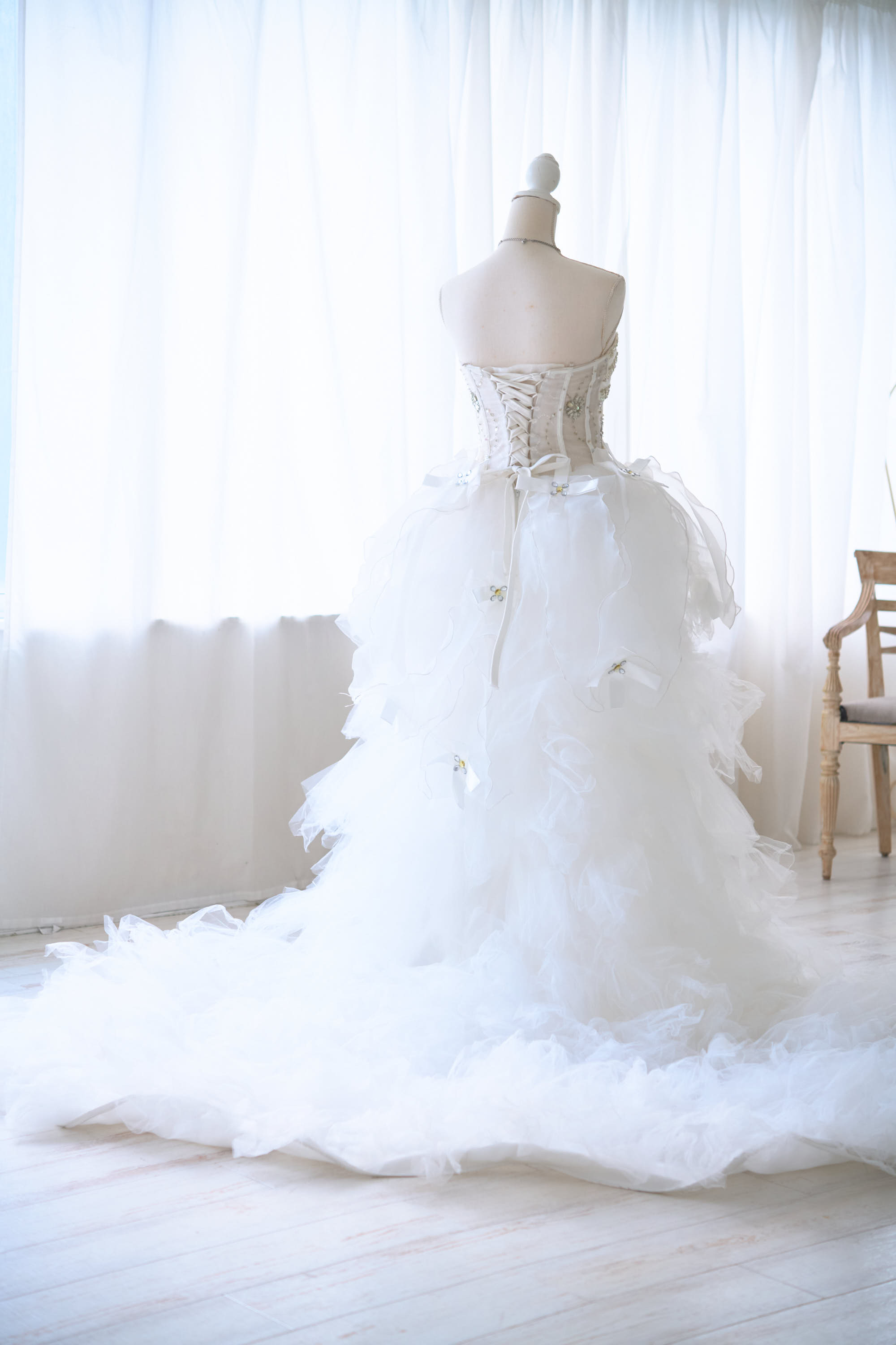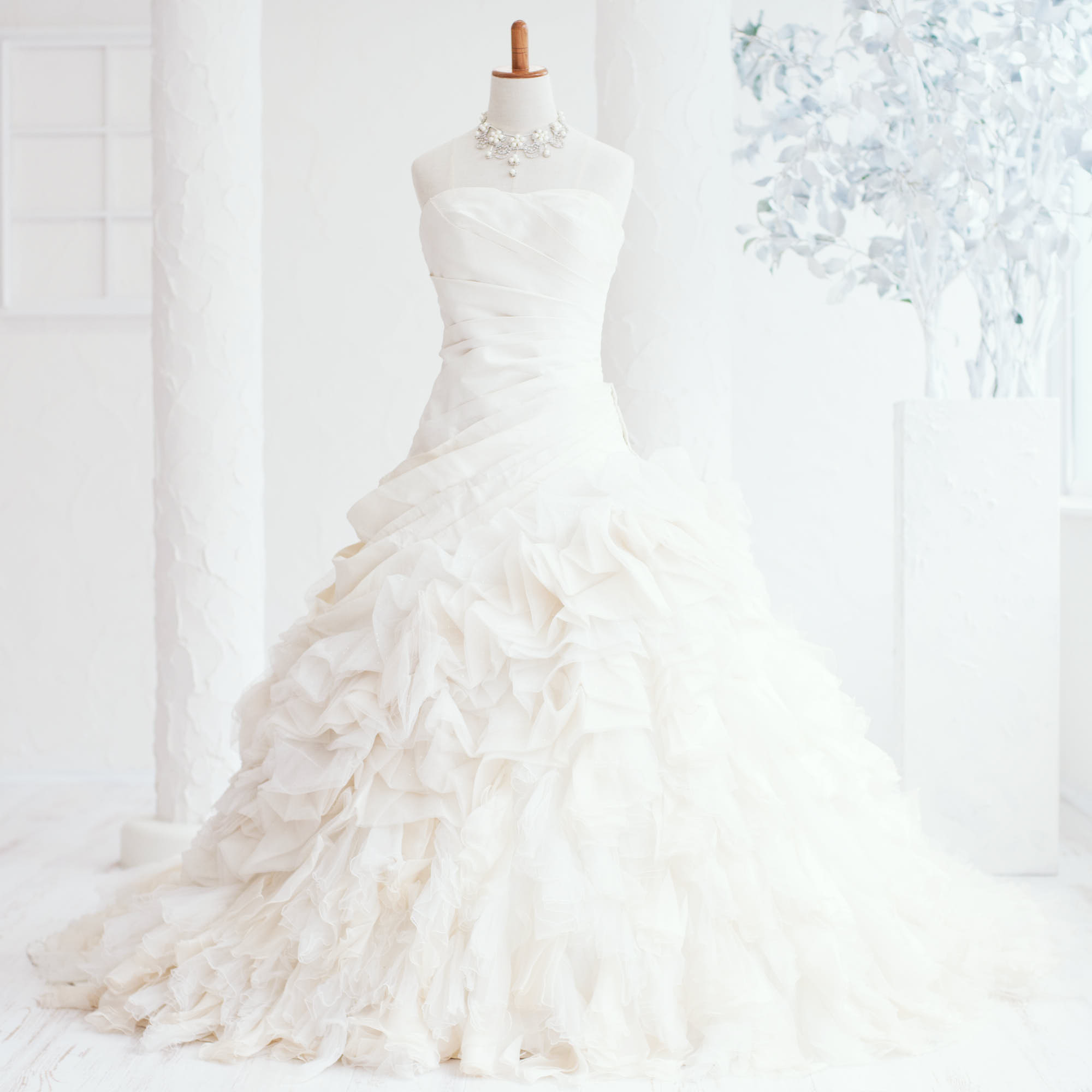 シンプルなものからゴージャスなものまで、多数のウェディングドレスと、カラードレスのレンタル衣装をご用意しております。
