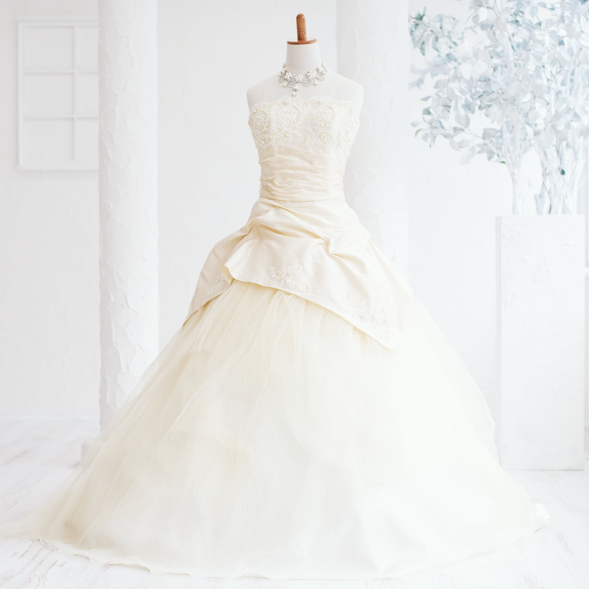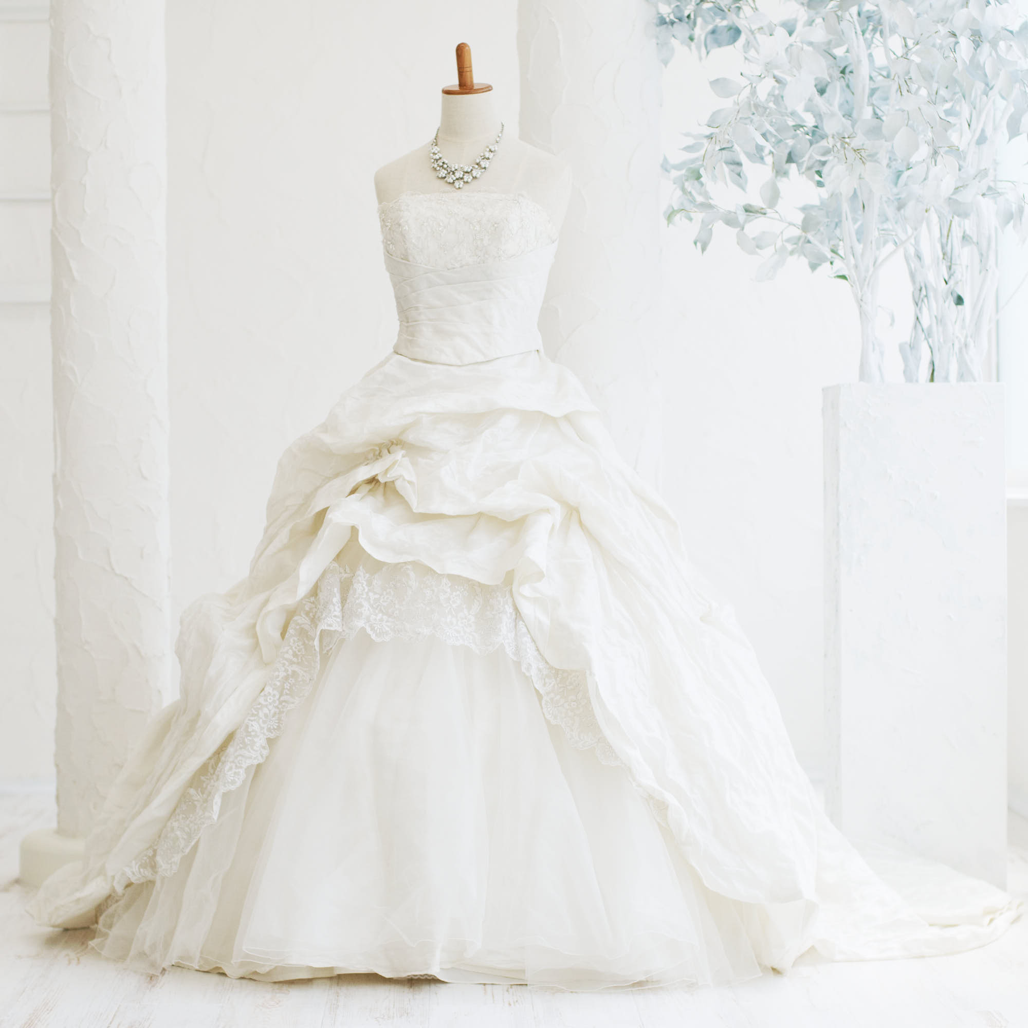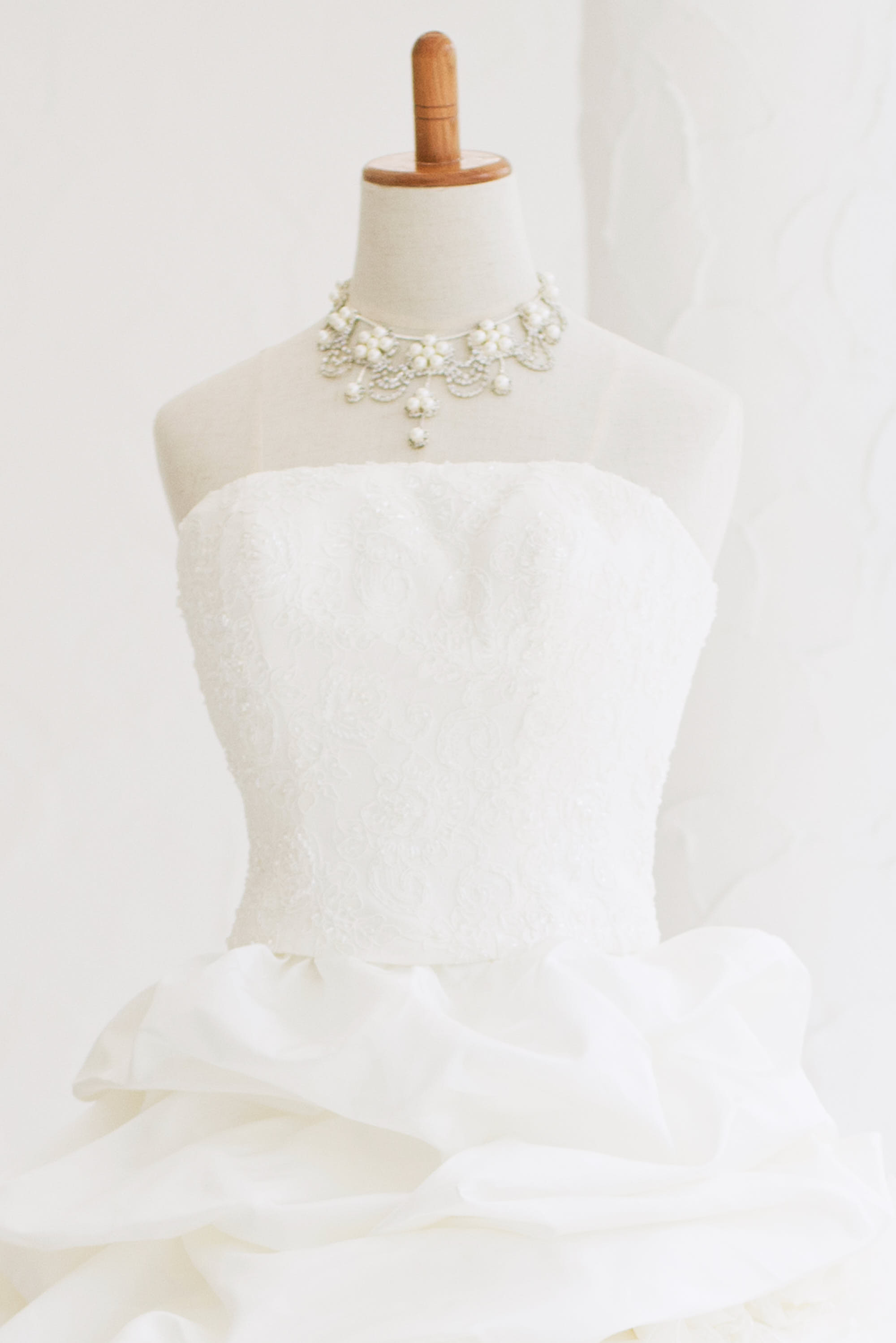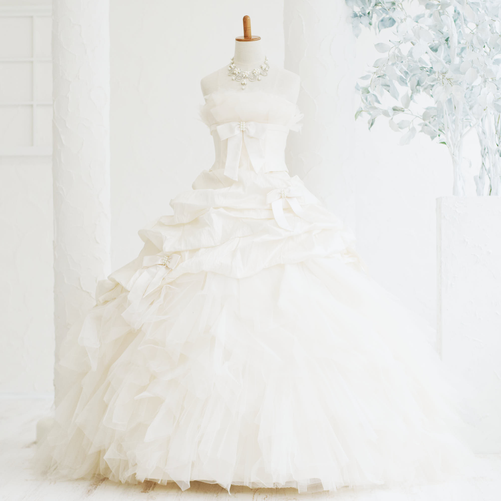ドレス本体 ベール ブーケ 手袋 アクセサリー(ネックレス・ヘアアクセサリー) パニエ(マーメイドタイプドレスを除く) 各1点
