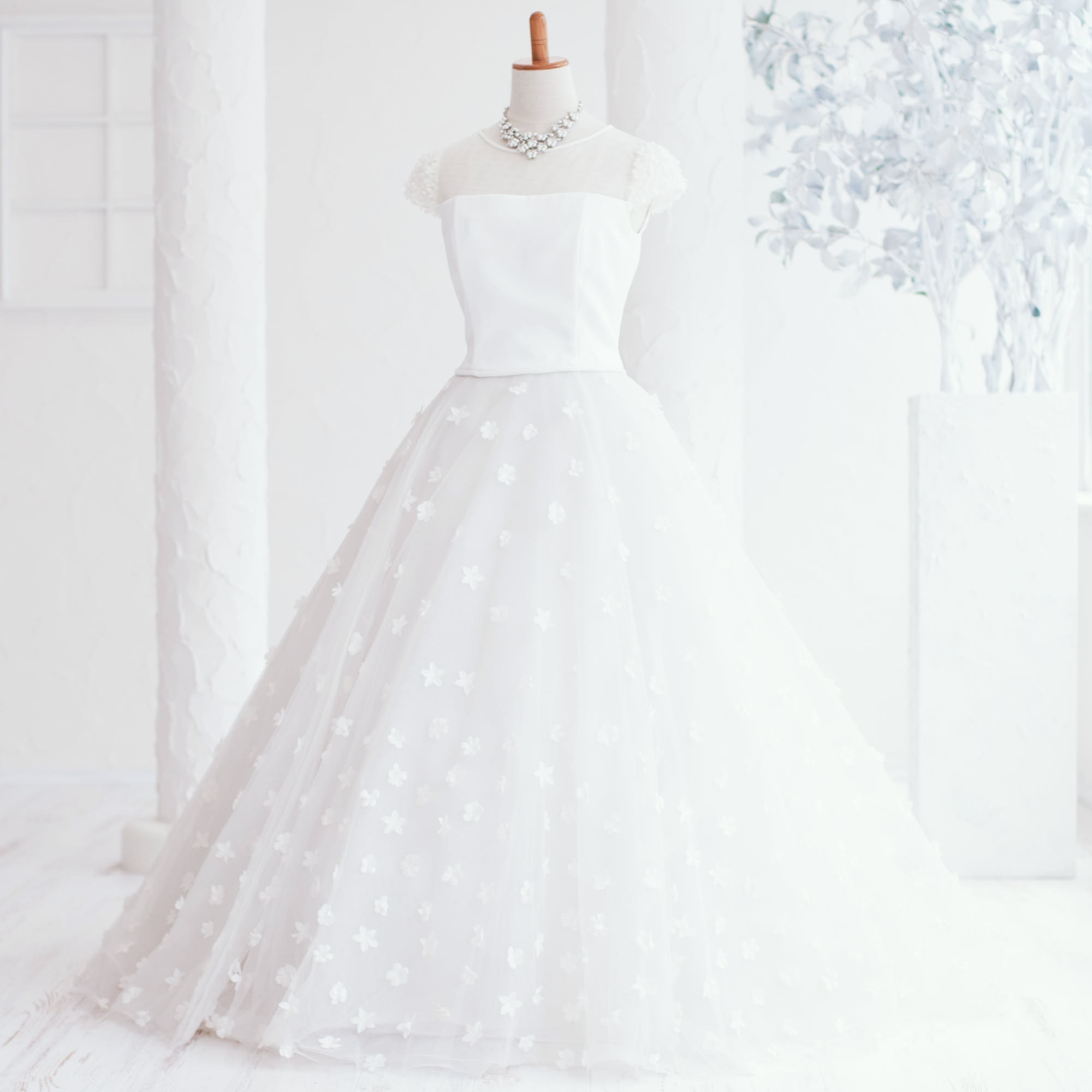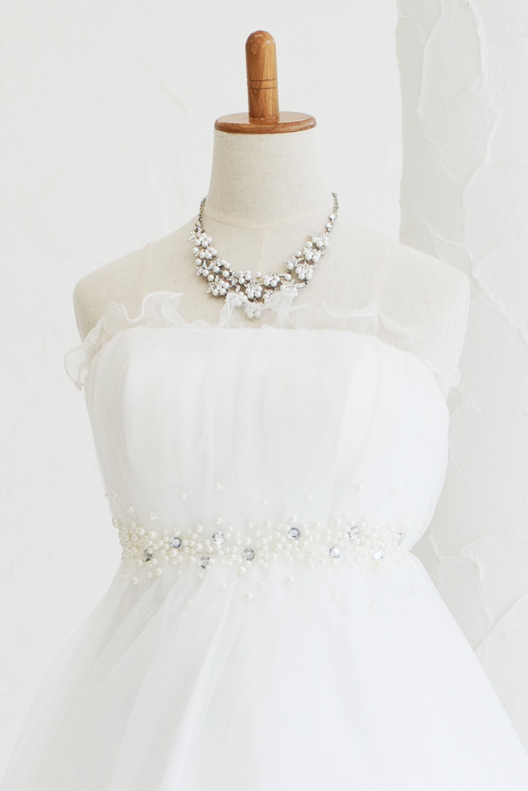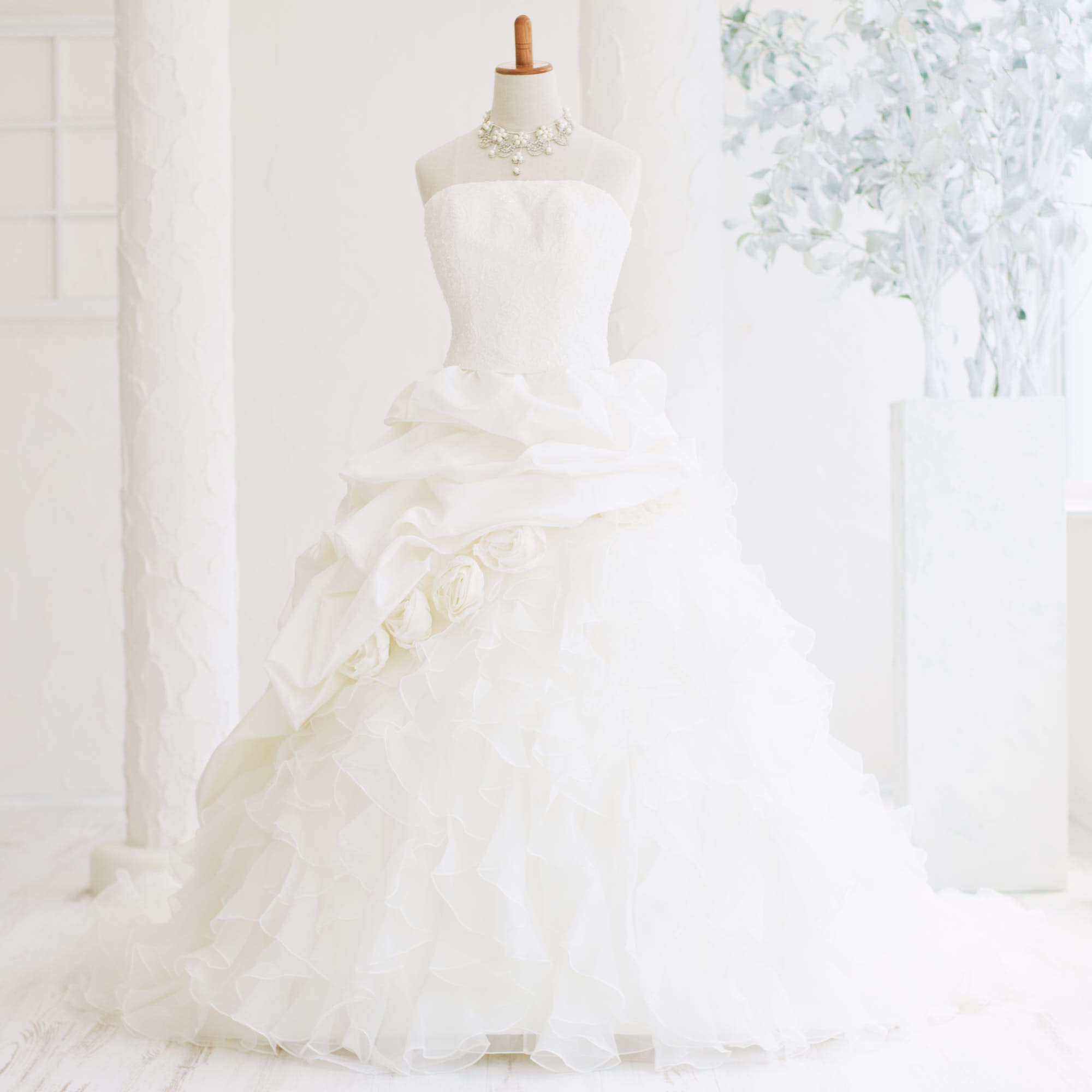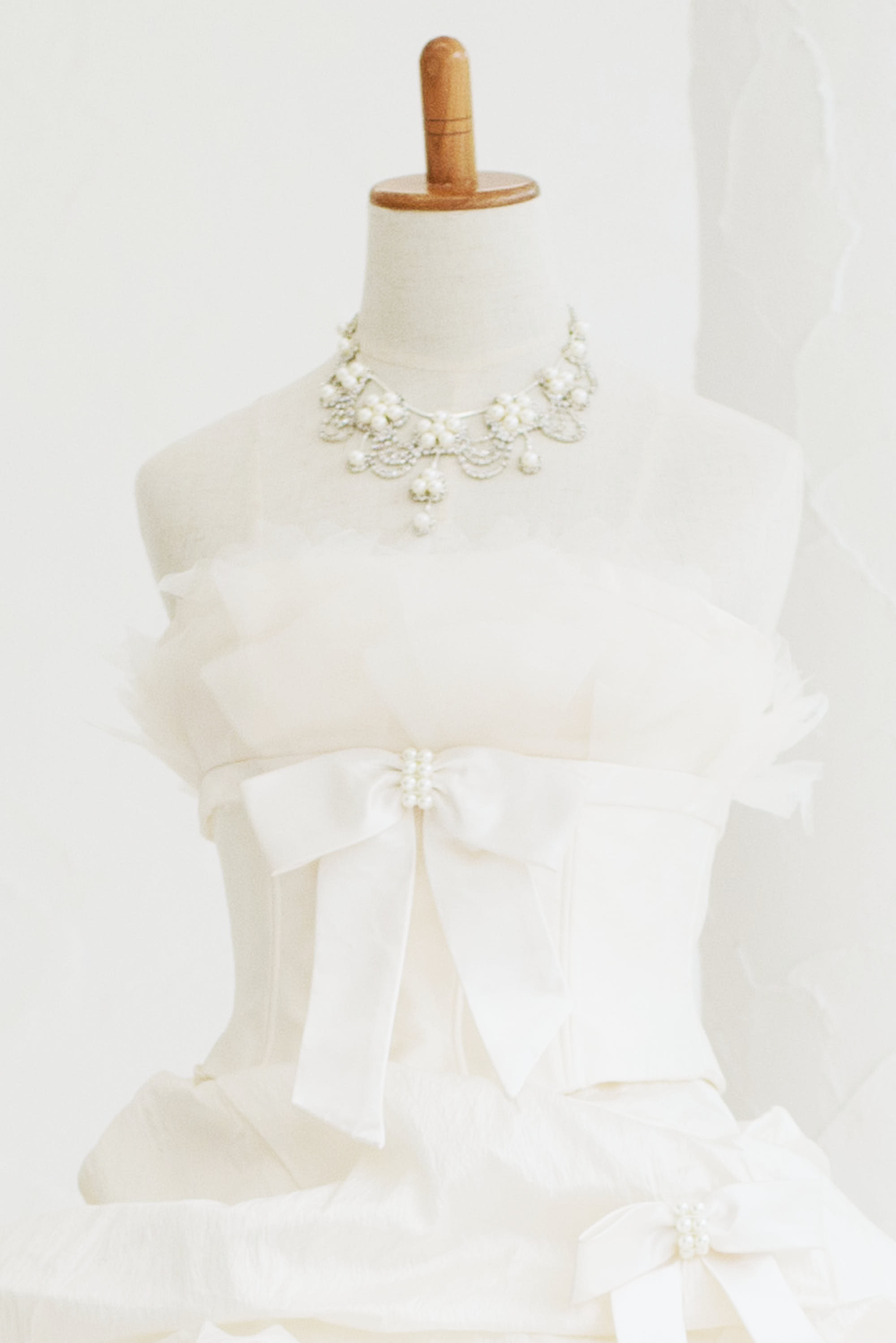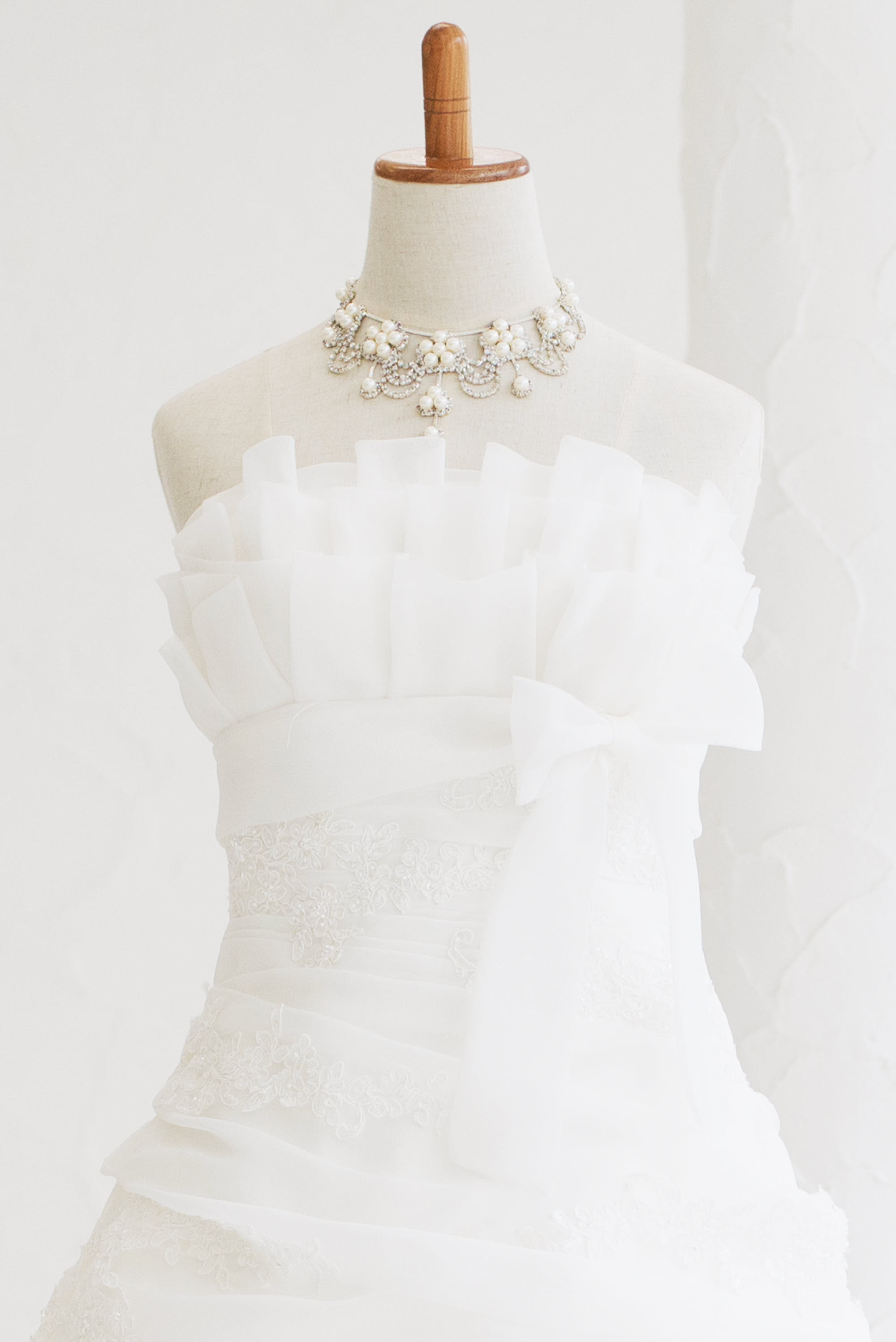 ドレス本体 ベール ブーケ 手袋 アクセサリー(ネックレス・ヘアアクセサリー) パニエ(マーメイドタイプドレスを除く) 各1点