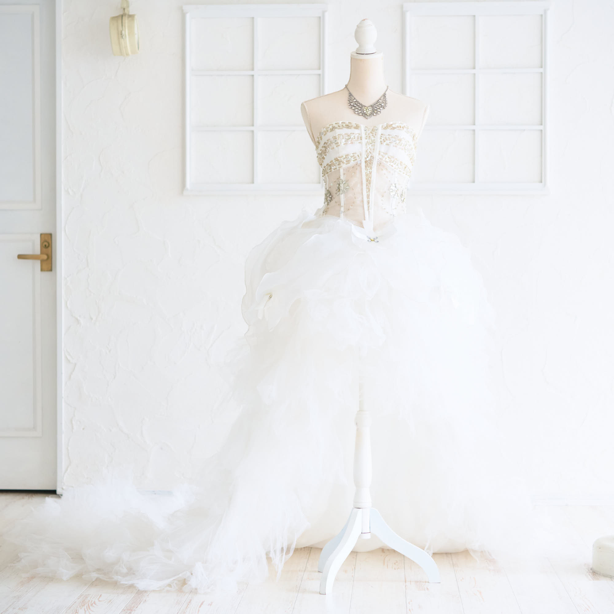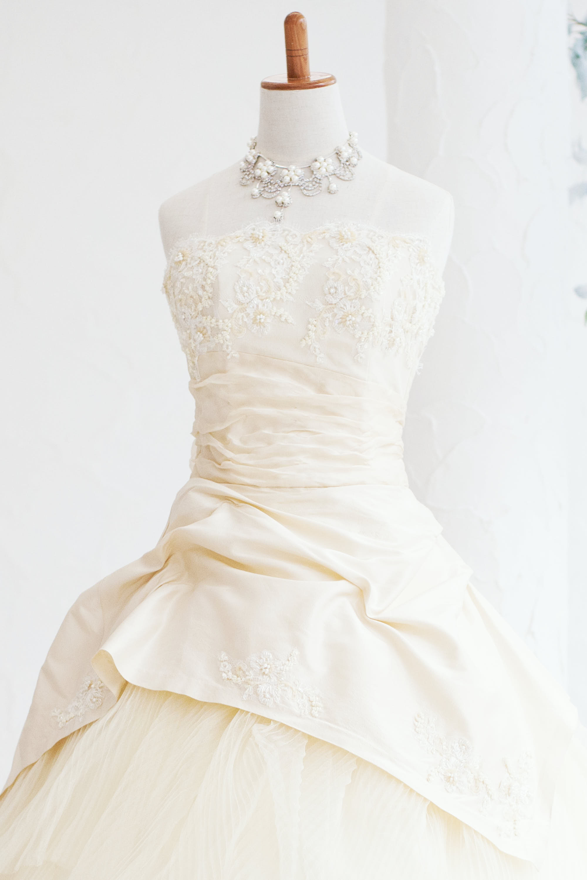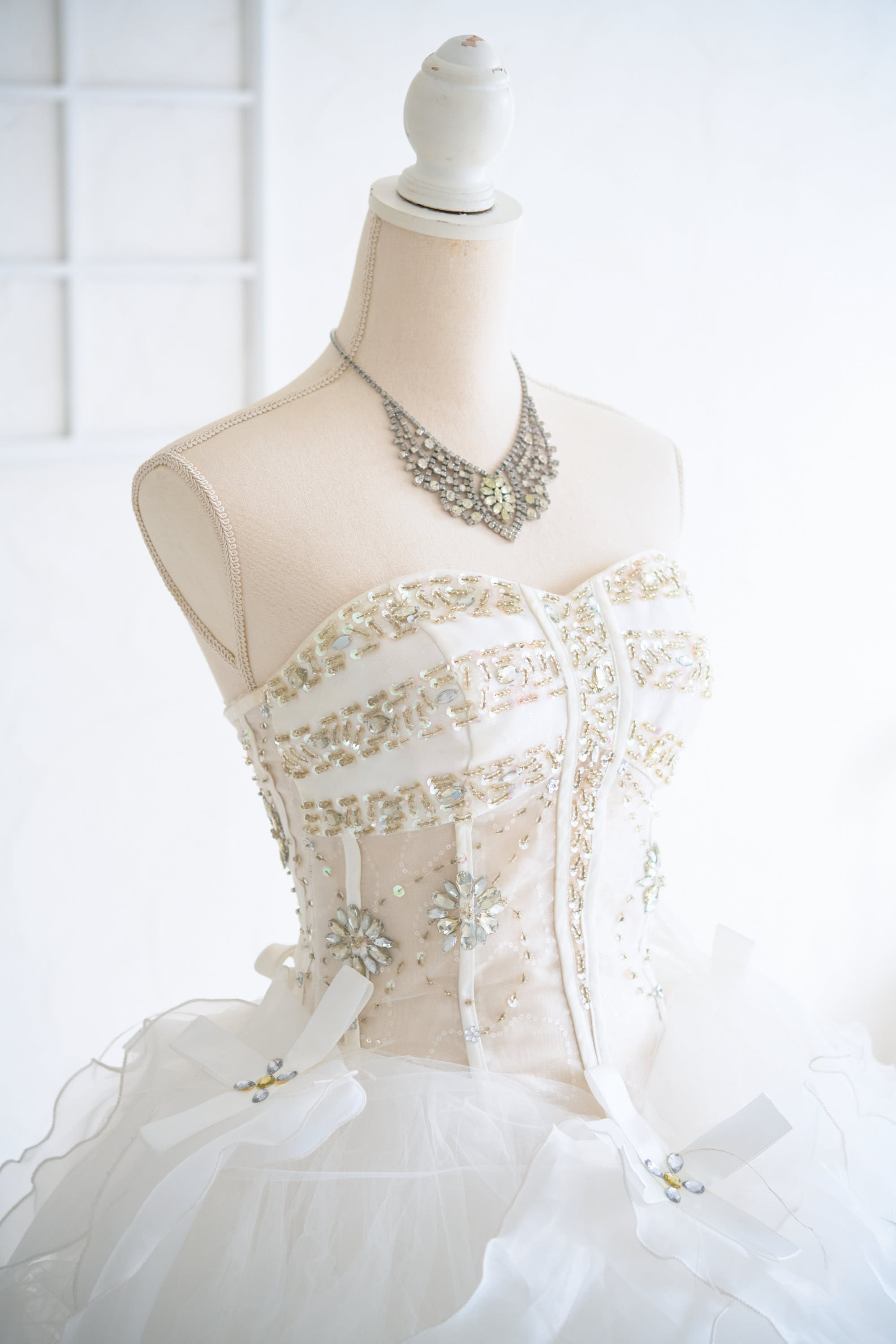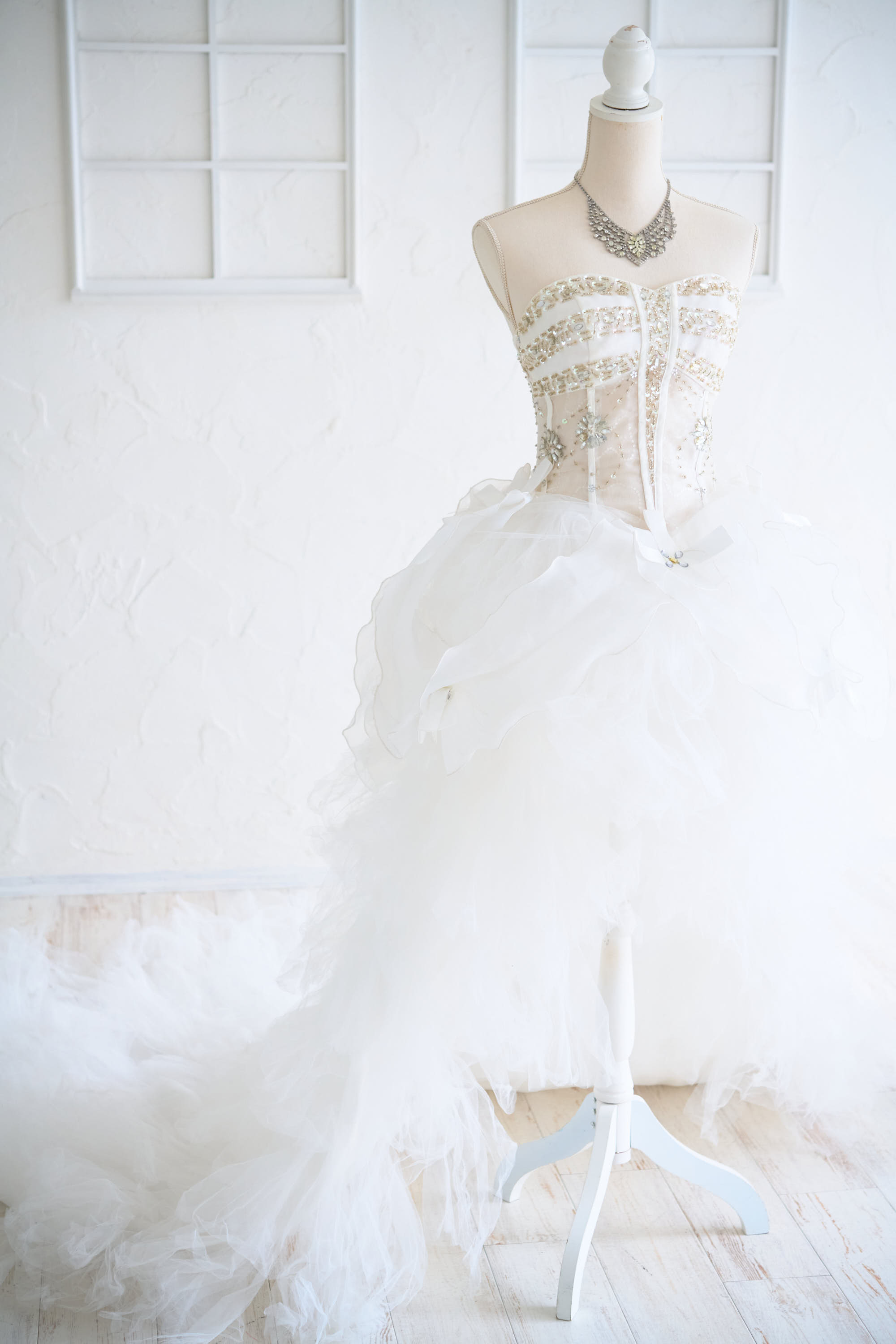 ドレス本体 ベール ブーケ 手袋 アクセサリー(ネックレス・ヘアアクセサリー) パニエ(マーメイドタイプドレスを除く) 各1点